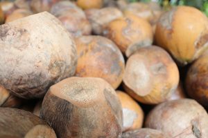 Trái dừa được chuẩn bị để ươm giống tại xã Chợ Gạo
